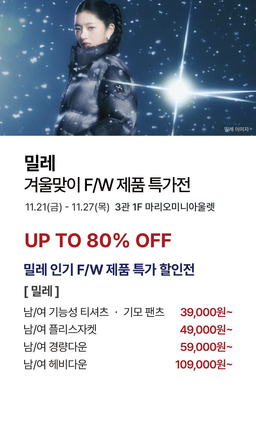 [밀레] 겨울맞이 F/W 제품 특가전
