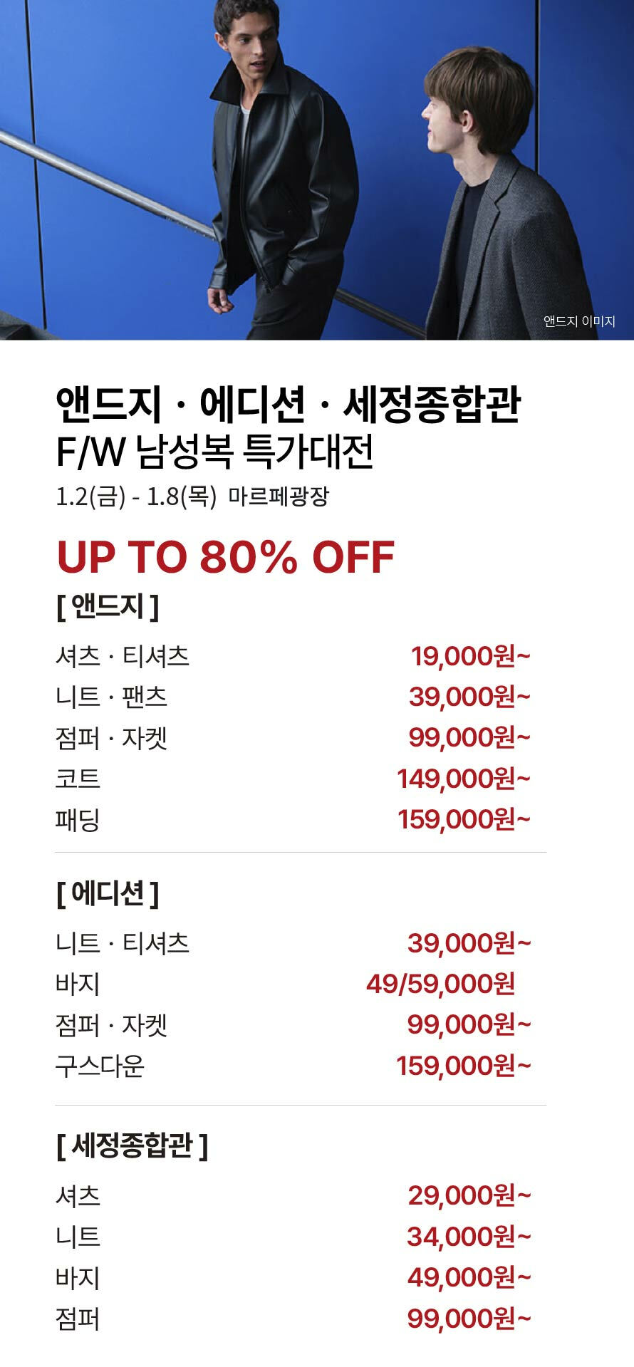 [앤드지·에디션·세정종합관] F/W 남성복 특가대전