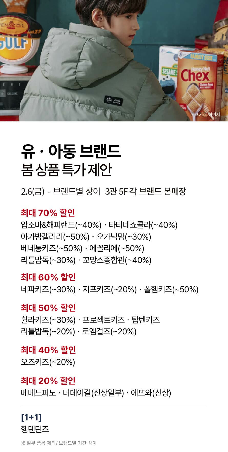 [유·아동 브랜드] 봄 상품 특가 제안! 기간 : 2026-02-05 ~ 2026-02-12 위치 : 3관 5F 각 본매장 ▲ 3월 마리오게임빌리지연천 펜션 숙박권 당첨자 ▼ 대중교통 생활화 캠페인