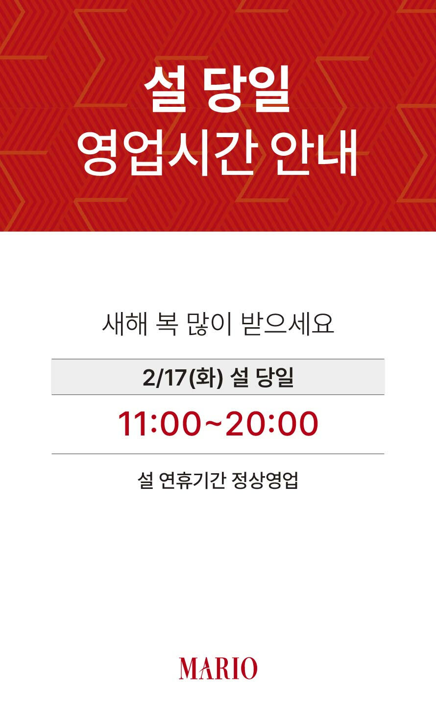 설 당일 영업시간 안내