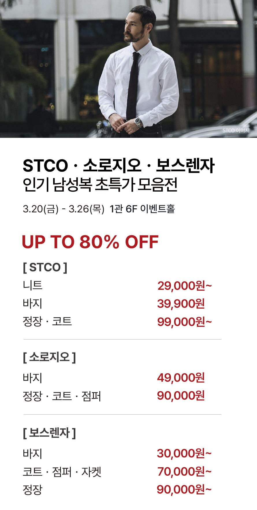 [STCO·소로지오·보스렌자] 인기 남성복 초특가 모음전 기간 : 2026-03-19 ~ 2026-03-26 위치 : 1관 6F 이벤트홀 ▲ 마리오게임빌리지연천 펜션 숙박권 이벤트 ▼ 3월 마리오게임빌리지연천 펜션 숙박권 당첨자