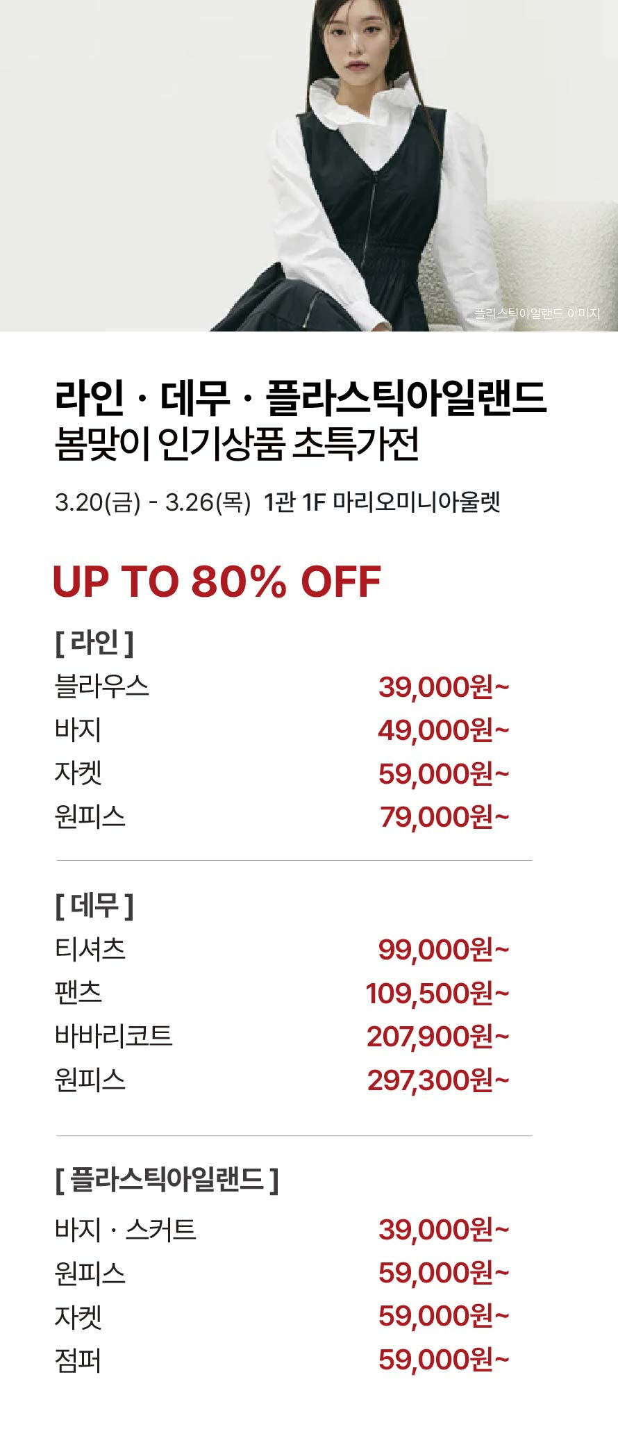 [라인·데무·플라스틱아일랜드] 봄맞이 인기상품 초특가전 기간 : 2026-03-19 ~ 2026-03-26 위치 : 1관 1F 마리오미니아울렛 ▲ 마리오게임빌리지연천 펜션 숙박권 이벤트 ▼ 3월 마리오게임빌리지연천 펜션 숙박권 당첨자