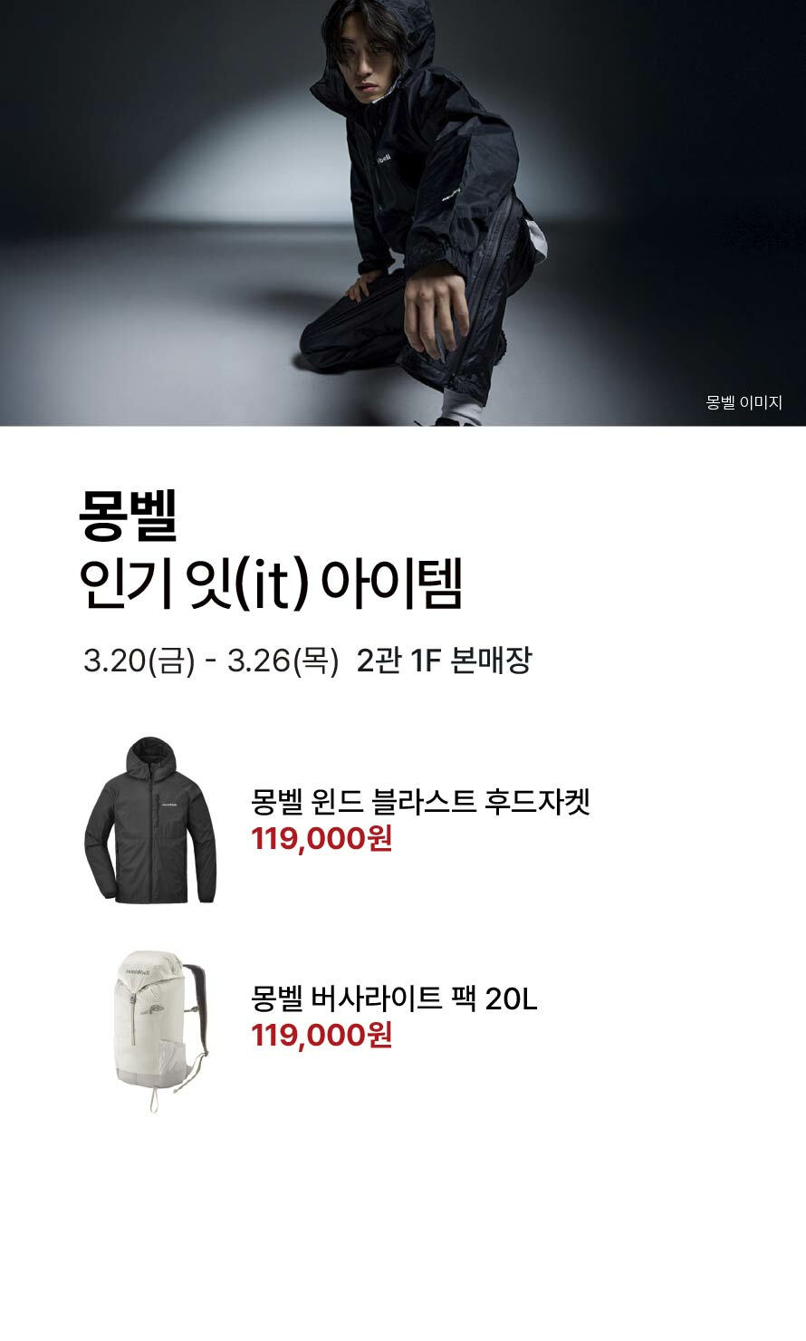 [몽벨] 인기 잇(it) 아이템 기간 : 2026-03-19 ~ 2026-03-26 위치 : 2관 1F 본매장 ▲ 마리오게임빌리지연천 펜션 숙박권 이벤트 ▼ 3월 마리오게임빌리지연천 펜션 숙박권 당첨자