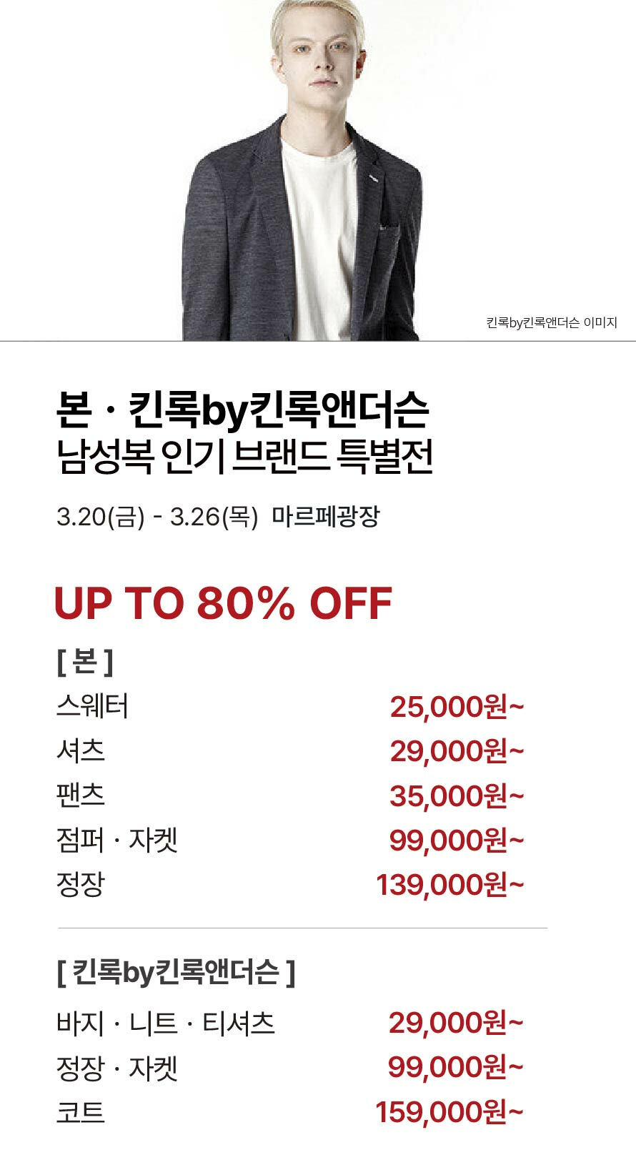 [본·킨록by킨록앤더슨] 남성복 인기 브랜드 특별전 기간 : 2026-03-19 ~ 2026-03-26 위치 : 마르페 광장 ▲ 마리오게임빌리지연천 펜션 숙박권 이벤트 ▼ 3월 마리오게임빌리지연천 펜션 숙박권 당첨자